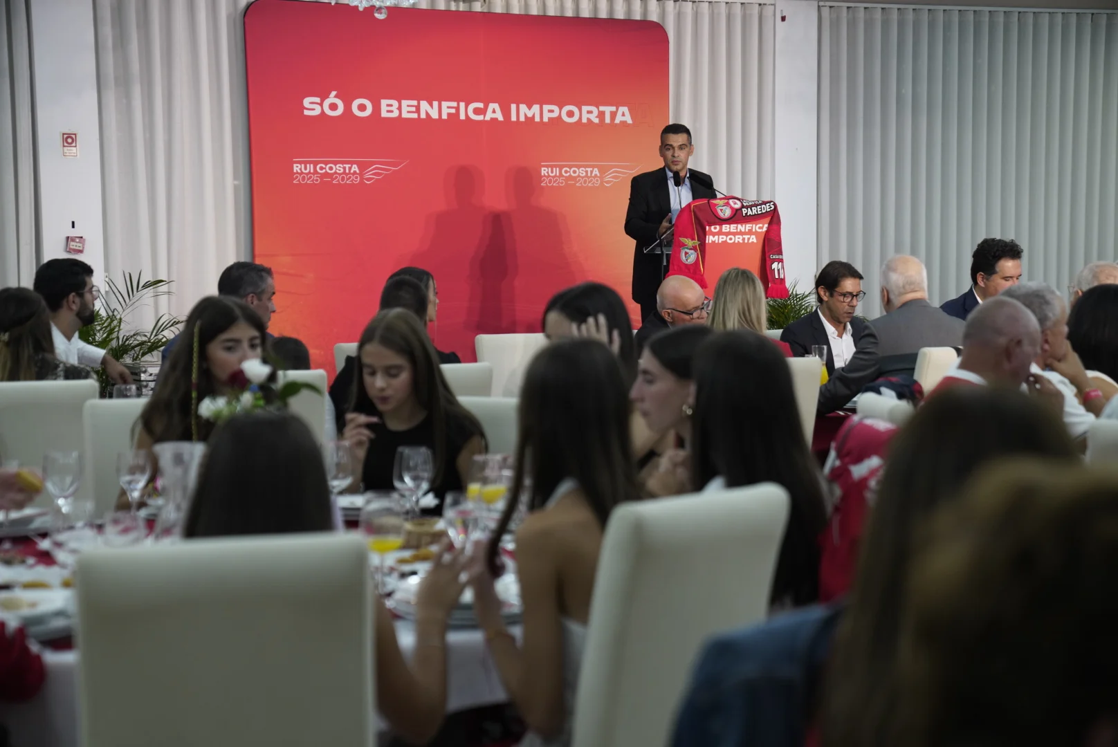 Num jantar-convívio que reuniu centenas de Benfiquistas e celebrou os 26 anos da Casa do Benfica de Paredes, Rui Costa foi recebido com enorme entusiasmo. Entre cânticos e abraços, o Presidente do Benfica sentiu na pele a força do povo do “Marquês do Norte”, como é carinhosamente conhecida esta zona.